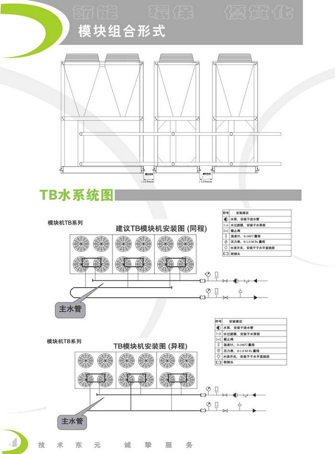 模塊化的設(shè)計,由單元模塊組合而成,根據(jù)負(fù)荷需要可選擇1-15個單元模塊。若需增加容量,可以增加模塊或再選擇適當(dāng)?shù)哪K組成機(jī)組,接入已有的系統(tǒng)就可投入運(yùn)行。
