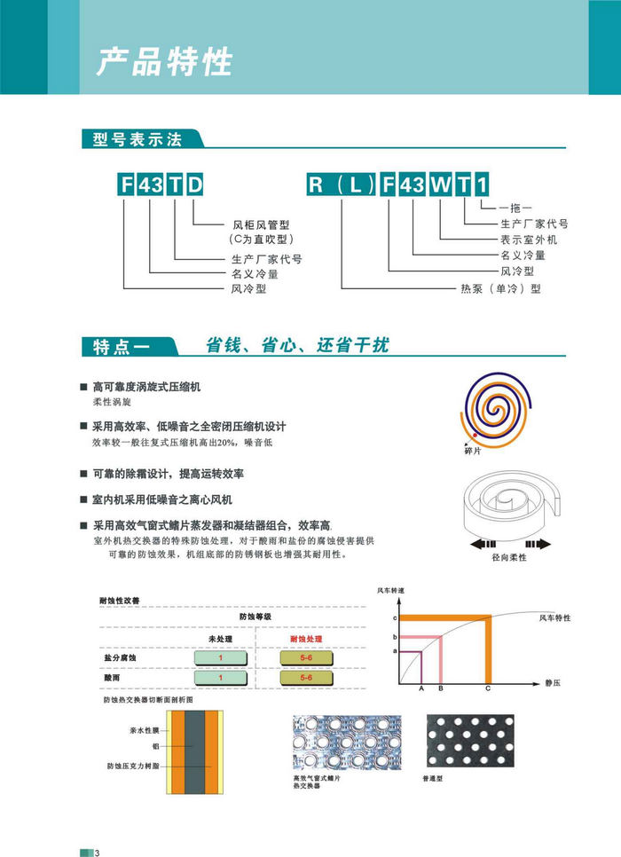 采用全密閉渦旋式壓縮機,搭配低噪聲之離心風機,有別于一般家用機,極適用于工、商用空間